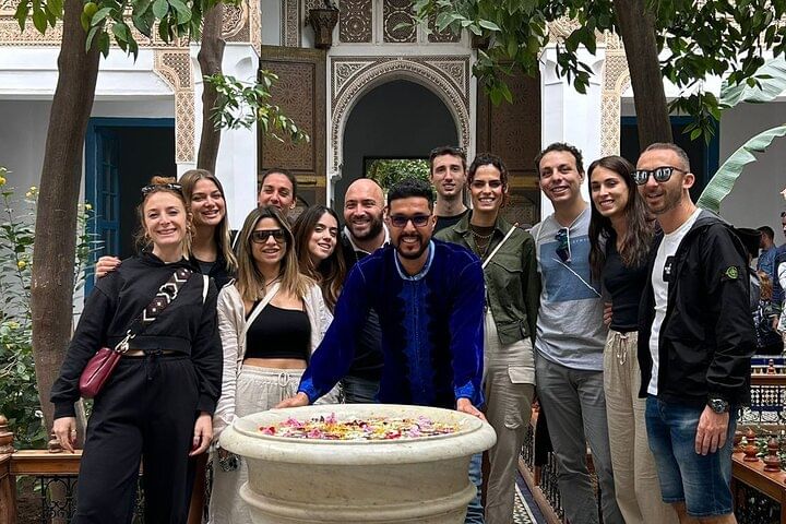 Discover the enchanting soul of Marrakech on this intimate, personalized tour through the heart of the Medina. Your journey begins at the majestic Koutoubia Mosque, followed by a visit to the historic Mellah district, where you'll explore the beauty of Bahia Palace. Then, venture into the bustling souks, where you’ll uncover the craftsmanship of the leather artisans, the blacksmiths and Moroccan lamps, and the vibrant Olive Market. Take a peaceful break at a humble rooftop for a sand coffee stop, a chance to relax and recharge. Unlike large group tours, you'll have plenty of time at each stop to soak in the unique culture and traditions of Marrakech. To end your adventure, your guide will offer expert recommendations and assist with any inquiries at the iconic Jemaa el Fna square. Book with Amayyur for a truly unforgettable, personal experience of Marrakech’s magic and beauty!