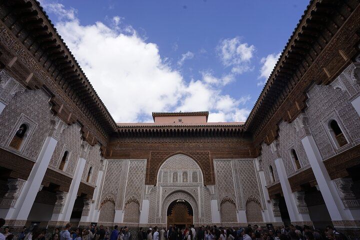 Discover the heart of Marrakech on a full-day walking tour. Explore souks, palaces, hidden courtyards, and artisan spots with a local guide. Visit Jemaa el-Fnaa, the Saadian Tombs, and more. Includes lunch break and insider access to the Medina’s best-kep